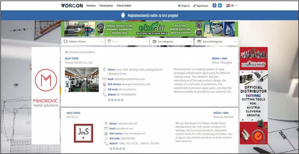 Registracija na Worcon platformi je besplatna. Dovoljno je izraditi profl tvrtke, unijeti sve podatke i sustav će izraditi internetsku stranicu optimiranu za suvremene internetske tražilice. Uz Worcon profl promičete vlastiti marketing na lokalnom i globalnom tržištu. Sastavni ste dio jedne od uskoro najveće baze industrijskih proizvođača diljem svijeta. Pozivamo sve tvrtke koje proizvode dijelove u strojnim obradama raznih vrsta materijala i one koje traže kooperante da se registriraju te s time omoguće bolje obostrano poslovanje.