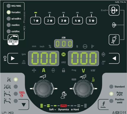 Krmilni sistem LP-XQ ima novo funkcijo hitrega izbiranja, s katero lahko nastavite preklop med procesi MIG/MAG, MIG/ MAG Standard, forceArc, wiredArc, rootArc, coldArc in drugimi. Optimalne karakteristike se vedno samodejno prilagodijo osnovnim nastavitvam, kot je npr. varilni potrošni material in uporabljeni plin.