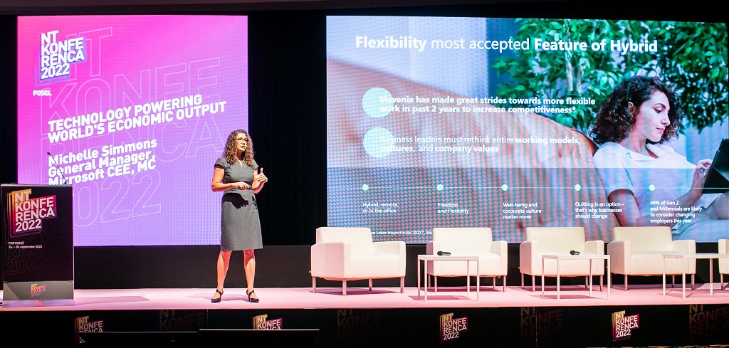 »Svet je na križišču velikanskih sprememb: geopolitičnih, ekonomskih, družbenih in tehnoloških. To nas postavlja na zgodovinsko prelomnico, kjer se izjemne priložnosti srečujejo s prav tako veliko odgovornostjo do sveta okoli nas. Dokazali smo, da se lahko prilagodimo in rastemo,« je v uvodnem nagovoru povedala Michelle Simmons, generalna direktorica Microsofta za regijo CEE Multi-Country.